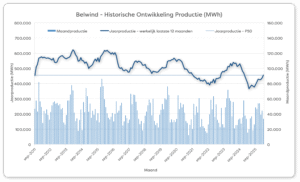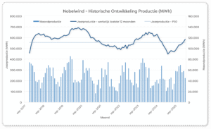 De productie in de eerste twee maanden van 2026 laat een stabiel beeld zien. Bij Nobelwind ligt deze in lijn met budget, terwijl Belwind er iets onder zit (P50).