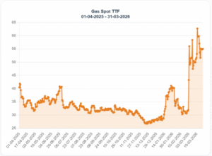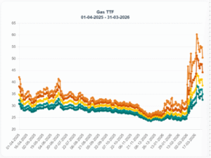 De gasprijs (TTF) maakte in het eerste kwartaal van 2026 een markante beweging door. Na een relatief stabiel einde van 2025 schoot de TTF-prijs begin maart omhoog als gevolg van escalerende spanningen in het Midden-Oosten, met name rond de Straat van Hormuz en de LNG-aanvoer vanuit Qatar. Analisten spraken van een tijdelijke schok; de verwachting is dat de prijzen terugzakken zodra de situatie de-escaleert en de LNG-aanvoer hervat.