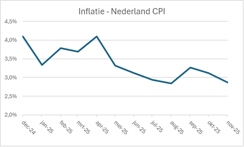 Bron: CPI Inflatie Nederland, Global-rates.com, 13 januari 2026