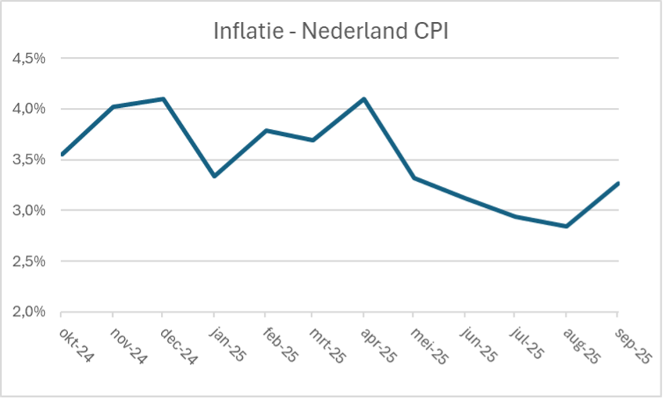 Bron: CPI Inflatie Nederland, Global-rates.com, 17 oktober 2025