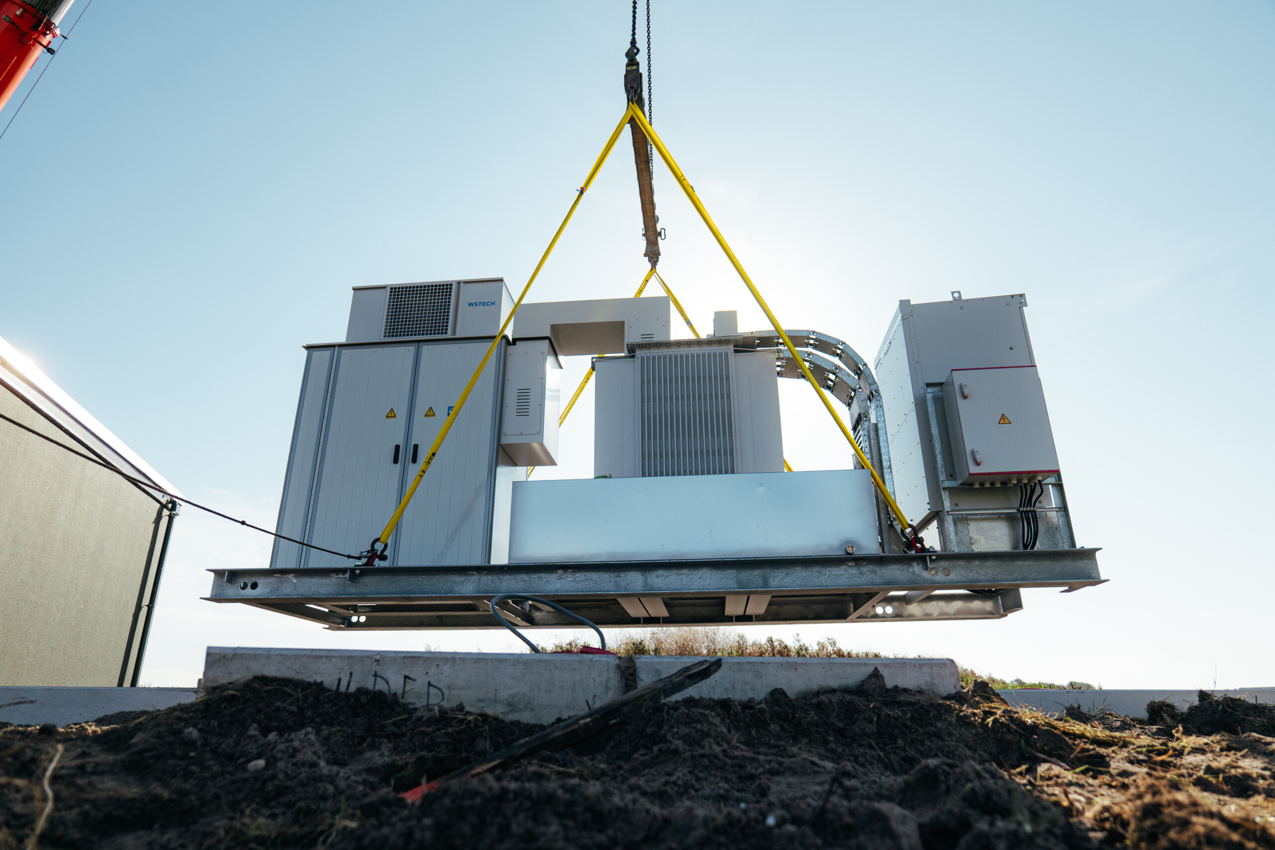 De industriële batterij die hiervoor nodig is, is indrukwekkend maar de échte innovatie zit aan de achterkant: in de intelligentie die bepaalt wanneer de batterij moet laden of ontladen.